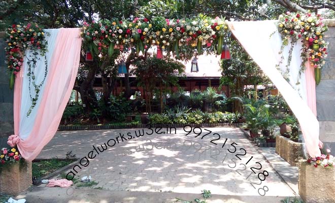 Wedding is a holy occassion that comes only once in a lifetime. Wedding decorations are the major attraction to the event and family members & guests spend considerable time taking pics all around the venue area (other than the stage area) to keep those memories througout their life. Therefore considerable importance needs to be given to the other wedding decorations (non stage area) as well, for example, the entrance decorations, pavement decorations, venue area decorations, etc. We provide you with the best wedding decorators in Bangalore who offer these other wedding decorations as per your budget, size and quality.